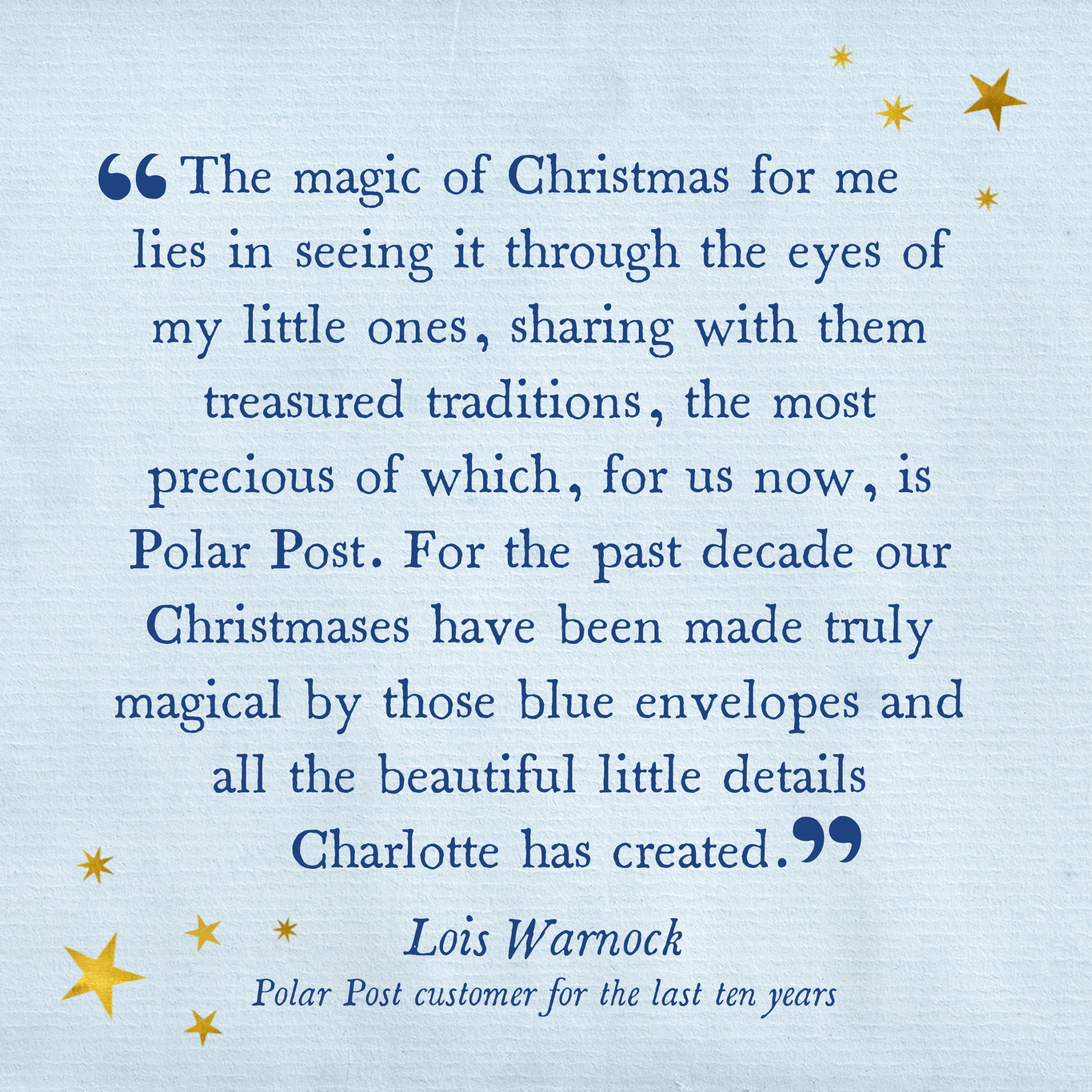 Polar Post began with a bundle of faded blue letters, treasures of my own childhood, which carried the unmistakable scent of snow and excitement. For the last ten years it has been an honour to bring to life the post office that we all know exists at the North Pole and create letters for children around the world that will hopefully become a treasured keepsake of their own childhood one day.