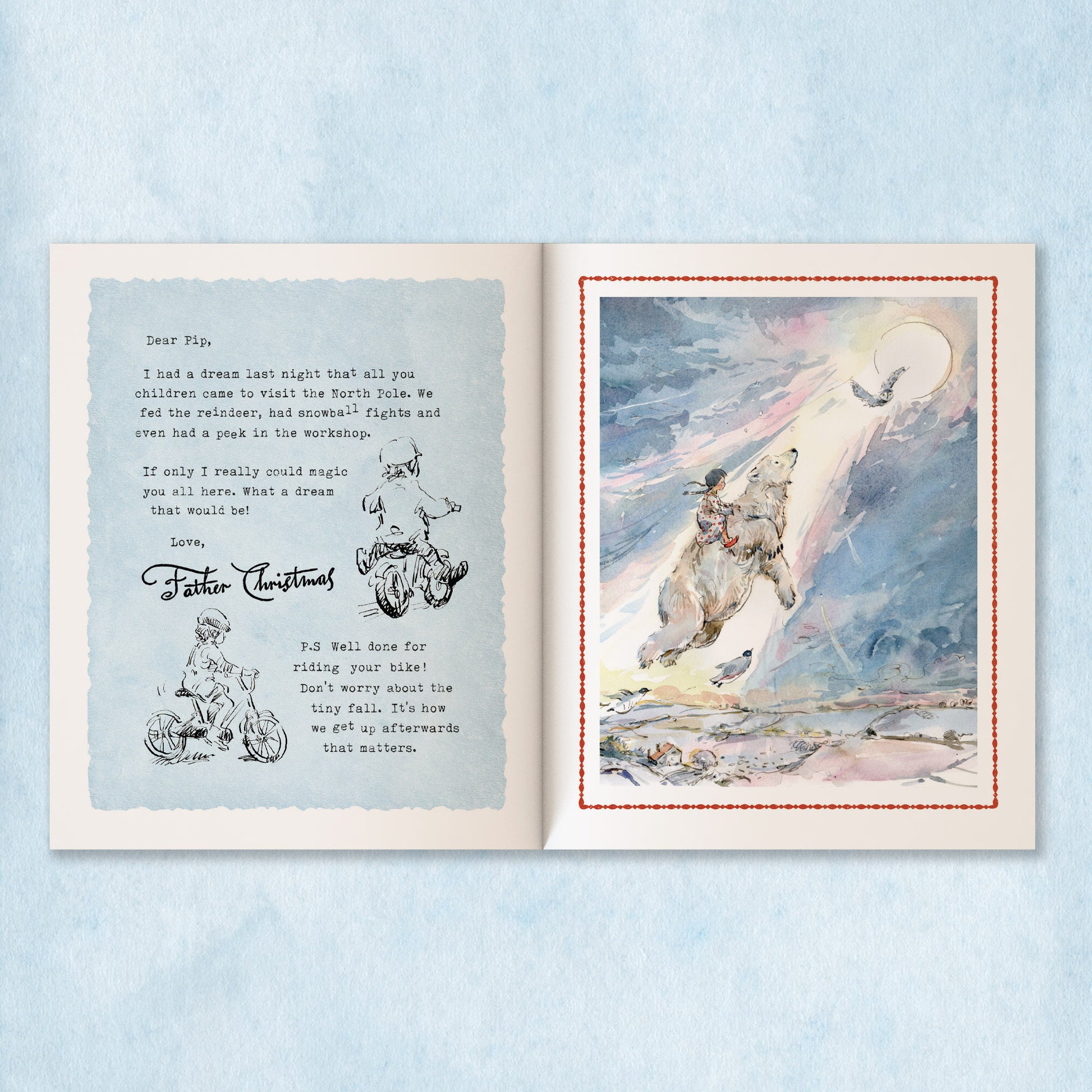 Claire Fletcher is renowned for her whimsical and magical style. Little wonder Father Christmas enlisted her help in creating this very special book. Her illustrations pull children and adults alike into a world where penguins and polar bears walk by our side.